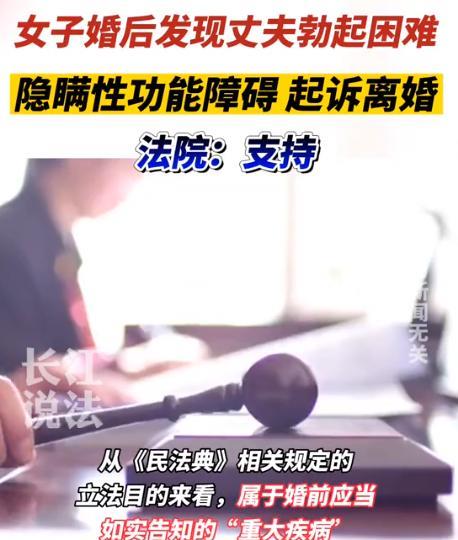 江苏南通,新婚之夜,丈夫拒绝和女子同房,女子以为丈夫太累便没在意。不料,后来丈夫也总是以各种理由拒绝进行夫妻生活。长此以往,女子发觉事有蹊跷,于是携丈夫前往医院检查,方知丈夫罹患严重的性功能障碍。女子觉得被骗,怒不可遏,将丈夫告上法院,请求撤销婚姻。 据南通网2023年4月17日报道,丈夫婚前未告知性功能障碍,妻子要求撤销婚姻。 江苏南通,黄女士原本以为自己终于嫁给了爱情,谁知道婚后不久,生活就彻底变了样,甜蜜的新婚生活竟成了一场闹心的骗局。 黄女士和丈夫陈先生是老同学,年少时没走到一起,兜兜转转几年后重逢,两人再次擦出火花。 这回感情进展很顺利,恋爱期间陈先生体贴周到,对她百依百顺,黄女士也觉得这个人靠得住。两家父母都很支持,于是顺理成章地步入了婚姻。 但从洞房花烛夜开始,黄女士就觉得哪里不对劲。 本想着终于可以和心爱的老公过点“二人世界”,结果陈先生却支支吾吾,说太累了想休息。 黄女士虽然心里有点失落,但也理解,毕竟婚礼折腾了一天。 可接下来的几天,陈先生还是一而再、再而三地找理由回避亲密接触。 不是说自己工作太忙,就是身体不舒服需要休息。 黄女士起初还体贴地给他熬汤炖补,可时间一长,她就开始怀疑了:这婚结了快一个月了,居然连一次正常夫妻生活都没有,这也太不正常了吧? 在她再三追问下,陈先生终于扛不住,坦白说自己身体确实有点问题。 黄女士赶紧拉着他去医院一查,这一查简直让她崩溃——陈先生竟然患有严重的性功能障碍,而且不是最近的问题,已经困扰他两年了! 黄女士当场就懵了,她怎么也没想到,这么大的事,陈先生婚前居然一个字都没提。 说好的相互信任呢?她觉得自己被骗了,这段婚姻从一开始就是建立在隐瞒和欺骗之上。 气愤之下,黄女士选择走法律途径,起诉陈先生,请求撤销婚姻。 法庭上,黄女士满腹委屈地说:“我以为婚后能正常生活,结果他一直躲着我,直到我逼问才说实话。如果我早知道,他身体有这个问题,我根本不会嫁!” 她认为陈先生故意隐瞒重大身体问题,剥夺了她的知情权和选择权。 而陈先生则低着头小声辩解:“我是真的怕说出来她就不嫁我了……我也不是不想治,一直在努力找办法,但就是不敢面对她。” 法院经过审理认为,虽然性功能障碍不在法律明确规定的“婚前重大疾病”清单里,但这事在婚姻生活中确实很重要,属于“影响结婚意愿的重大情况”。 性生活是婚姻的重要组成部分,这种疾病如果婚前不坦白,确实违反了诚信原则,属于隐瞒重大事实。 法院判决:撤销黄女士与陈先生的婚姻关系。 信源:南通网