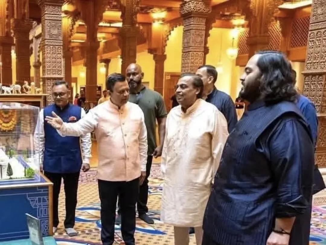 印度首富和小儿子儿媳合影,有网友说;小儿媳为啥搂着公公?难道这是印度传统? 于是