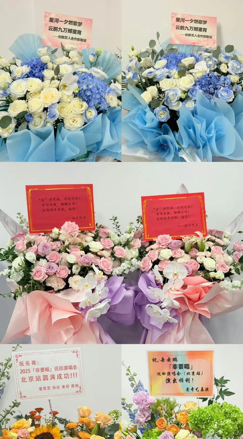 岳云鹏非要唱演唱会,观众已经开始进场,后台花团锦簇,薛之谦的花篮已经送到,德云社杨九郎,张九龄的花篮,也预祝师哥演唱会圆满成功,优酷,爱奇艺,快手平台也纷纷送来祝福。 德云一哥的排面还是很足的,就看今天演唱会的神秘嘉宾是谁了,很是期待。#岳云鹏演唱会#