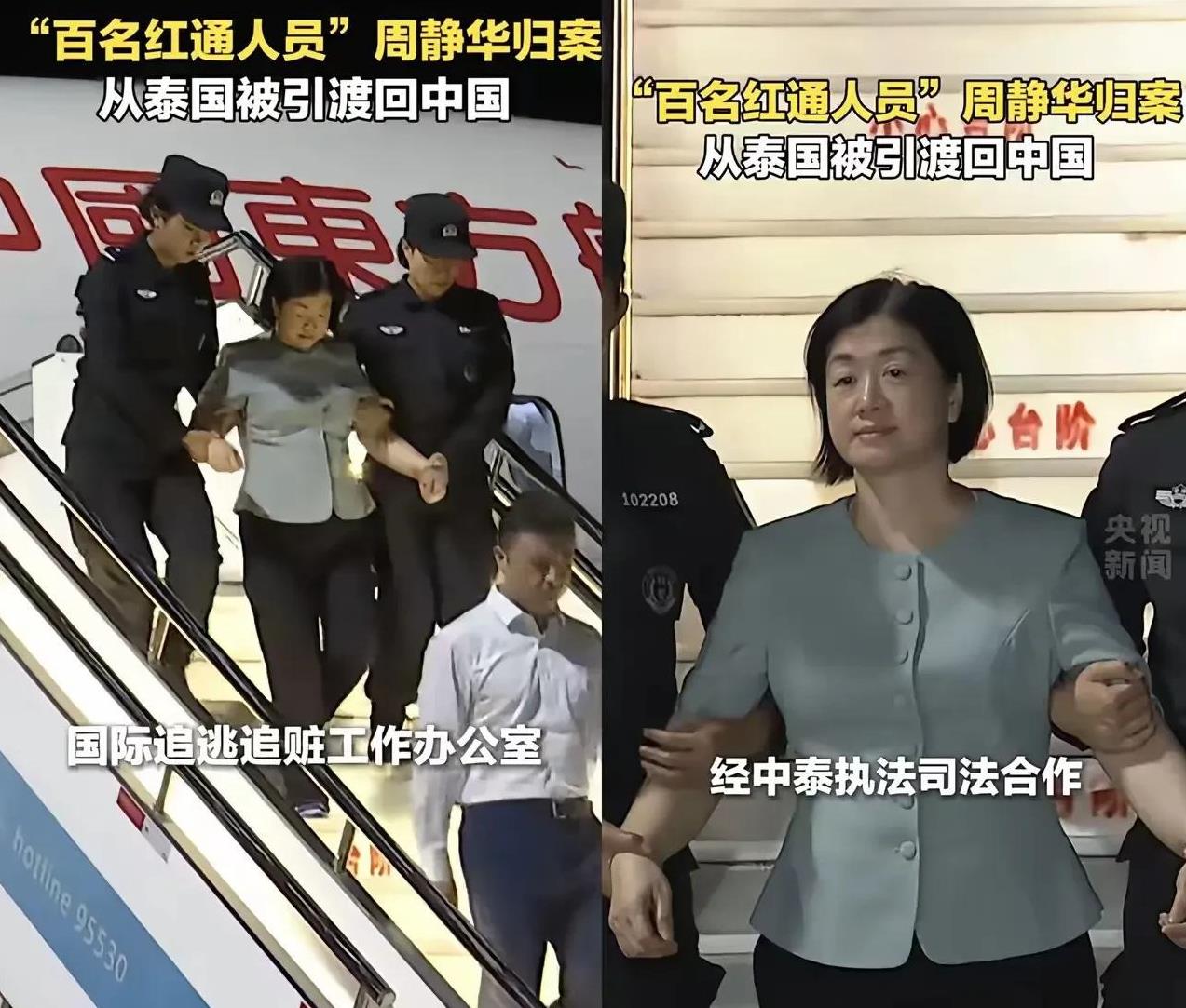 五个名字的女贪官抓回来了!可钱呢?想想就肉疼! 2025年7月,给大伙通报个大消息,“百名红通”里排第26号的周静华,终于被从泰国逮回来了[捂脸]! 这是引渡回来给她养老吗?一不会判死刑,二家人不会受牵连,三钱追不回来,最多判个无期,这样的引渡有什么意义。 她以前是云南铜业集团房地产公司在泰国项目的一把手周静华,油水足的位置,结果管不住手,涉嫌贪污,2010年一看风头不对,撒丫子跑泰国去了。 人家跑路也是有准备的,早就布局了!钱花没了,抓回来国家还得给他养老,不如就地正法,这日子在那边过得挺美吧?拿着国内的钱逍遥[擦汗]! 整整15年啊,追逃的人眼睛都盯出血了,2025年7月,总算把这尊“大神”请回来了。 她一落网,整个亚洲地区的“百名红通”名单算是彻底清零了,这事必须给追逃组点个赞! 但话说回来,咱老百姓心里总有个疙瘩:人是抓着了,可当年被她揣走的那些钱呢? 光泰国就买了不知多少房子,这么多年下来,挥霍的挥霍、转移的转移,真正能追回来的还有多少? 云南铜业那钱也不是大风刮来的啊!想到这儿,真叫人憋屈,人回来了,钱早没了,这事儿咋整[666]?