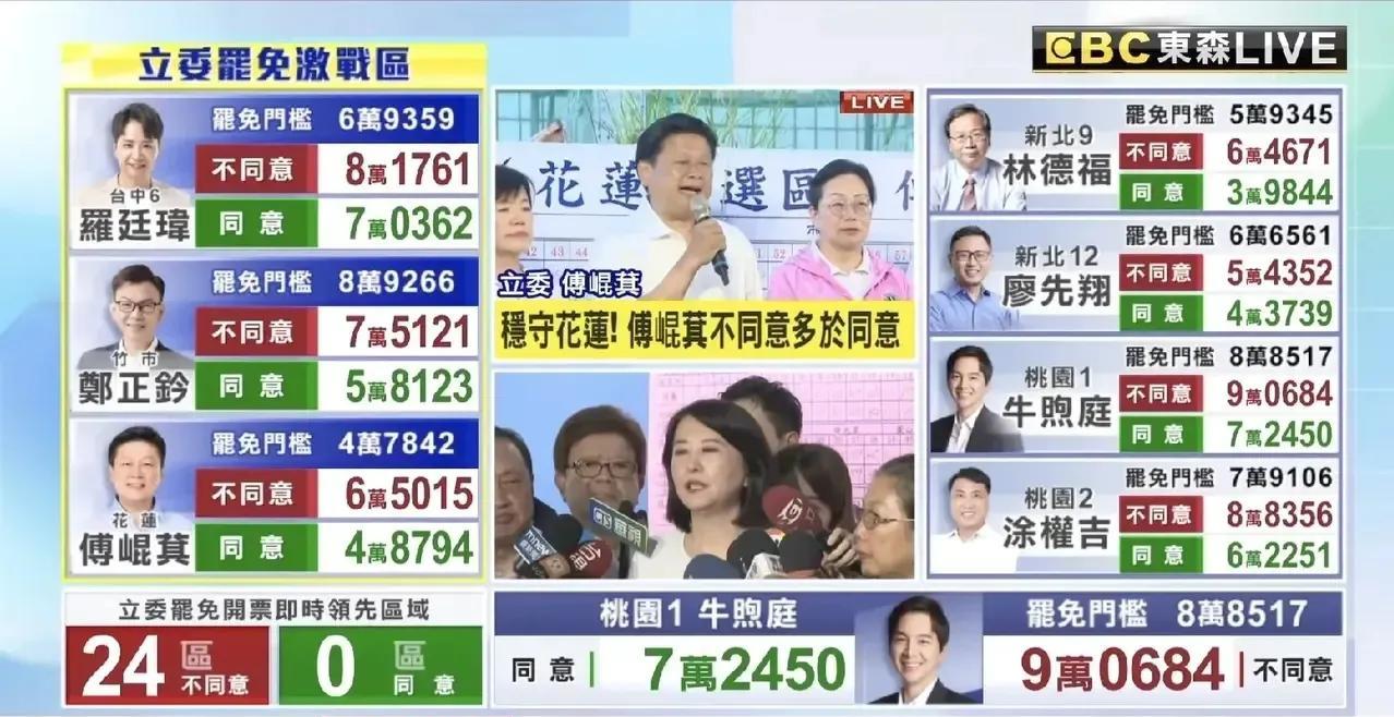 台湾大罢免结果出来了,民进党惨败!!! 7月26日18点。赖清德领导下的民进党推