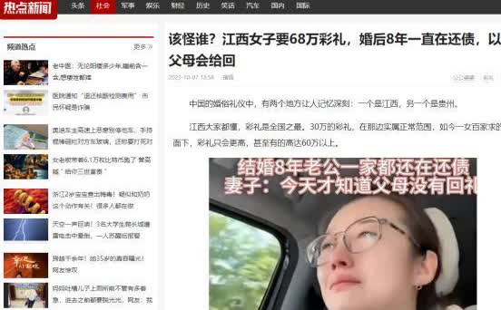 江西女子说自己快要崩溃了。结婚8年一直在还贷中,因为当初结婚时家里要了68万彩礼