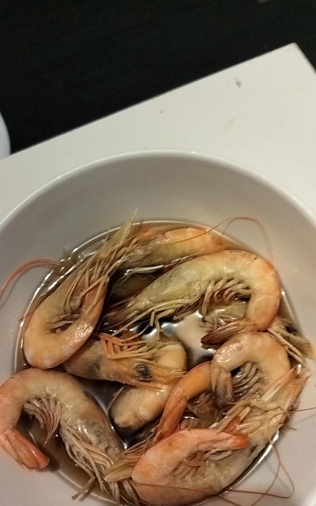 华人团购网买的野生基围虾5公斤才30刀。30*4.67=140.1,14人民币一斤。国内海运来香糟卤,烧熟后浸,超级人间美味。 在国内买到的都是养殖的,没这么大。这里全部野生,大的就和锅的直径一样长。煮虾时胡须都在锅外卷起,红色。