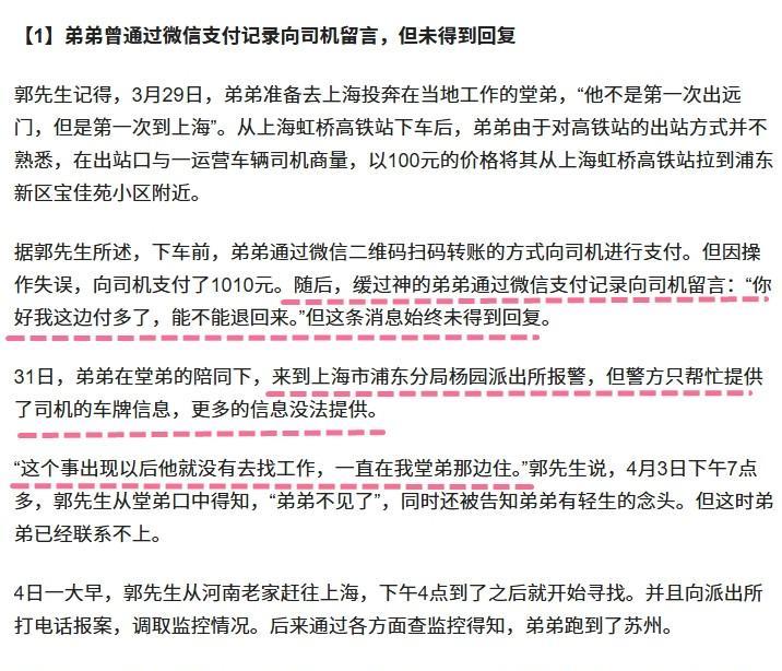 男孩报警了只给了司机的车牌信息,为什么没帮找回多付的车钱呢?要是能帮他找回,悲剧应该不会发生。网上竟然还有人指责这个男孩,说他心理承受能力太差了,不过一千块至于吗! 前几天看到这个报道时候,我都不太想点开,太心疼这个孩子了,为了一千块钱,就选择如此极端的方式,他的家人该有多伤心啊。 本以为网友都会同情这个孩子,没想到还是在评论区看到一些刺耳的留言,他们觉得这孩子心理承受能力太差了。 以前曾看过有心理学研究表明“经济压力与自杀风险呈显著正相关,而刚步入社会的年轻人正是心理脆弱的高危群体”。 这个孩子还未满19岁(9月刚好19岁),他刚入社会,就因为自己的不小心,在支付的时候,犯了一个小错误,多付了910块钱,“巨款”就这样被人拿走了,他想过补救,给司机留言没有得到答复,他也在自己的亲人帮助下,去报警了。 报警后也只得到司机的车牌信息,并没有及时帮他找回丢失的钱财。 这个孩子要是知道通过车牌信息,就能找到司机,他也不会报警了,打车时看他付款的画面,不像是在平台,而是私下和司机商量约定的打车费用,下车后扫码完成支付(图3)。 在普通的成年人眼中这微不足道的多付了“910块钱”,可能让孩子幼小的心灵,承受了常人难以理解的压力,在无助失望中,孩子最终做了一个错误的选择。 网友也不知道这孩子家庭情况,也不知道1000块钱对他意味着什么,就开始在网上指责:"心理承受能力太差"、"为了这点钱至于吗"。这些站在道德高地的评判,暴露出是对他人苦难的傲慢! 这起事件,网友们应该更关心,到底是什么让他觉得活不下去了?而不是去怪他心理承受能力差,为了那点钱就走上不归路。
