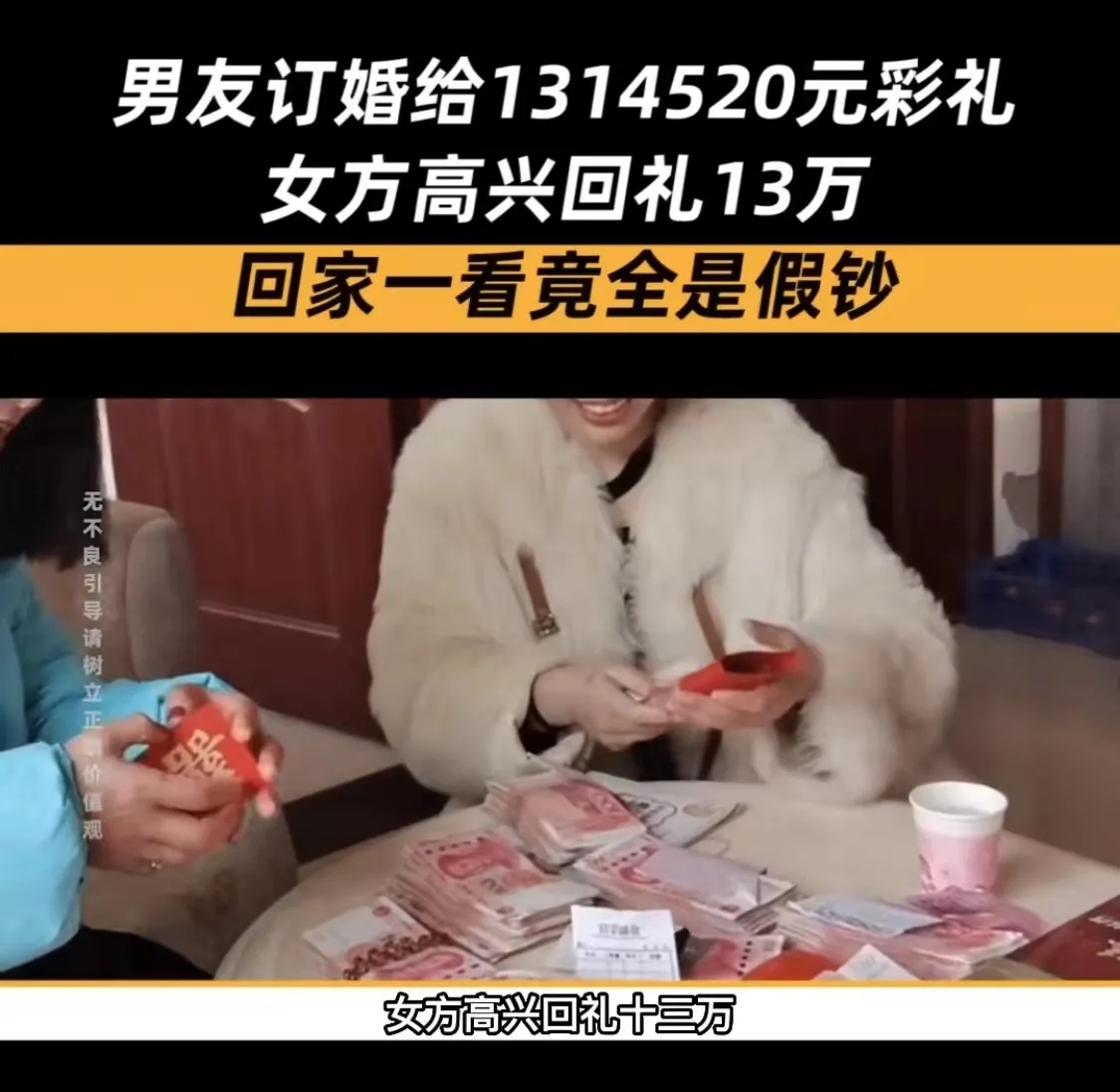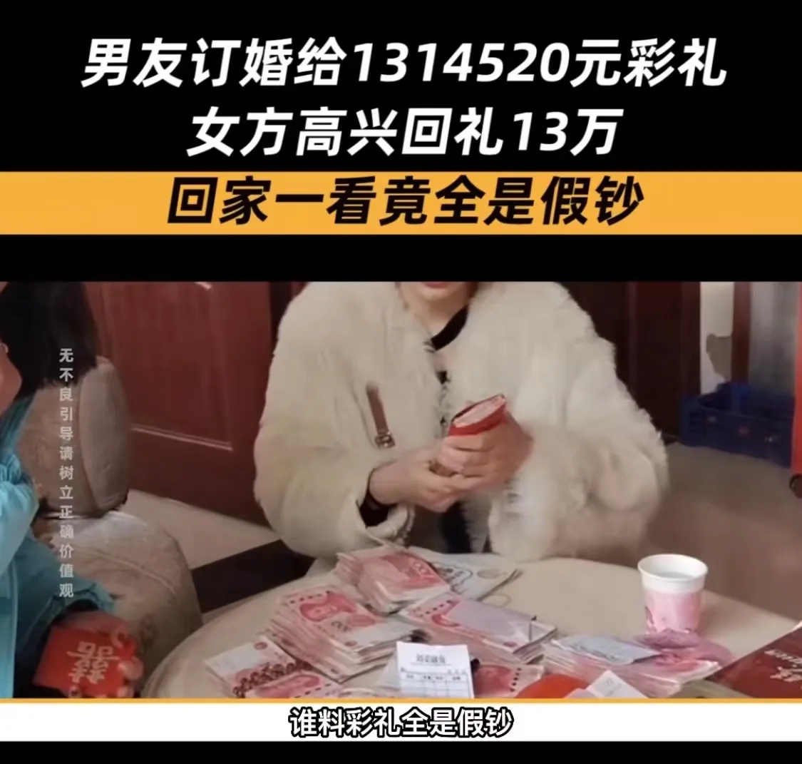 浙江台州,男友在订婚的时候直接拎来一行李箱现金作为彩礼,一共1314520元,女子为表达爱意,直接返还131452元,但等女子回到家,打开行李箱一看,整个人彻底蒙圈,一行李箱钱竟然全是假钞。