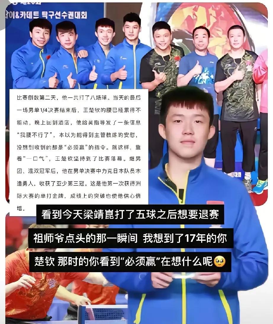 看到梁甜甜腰伤复发,祖师爷毫不犹豫点头同意退赛,王楚钦一定更爱魏桥了。他心里会不