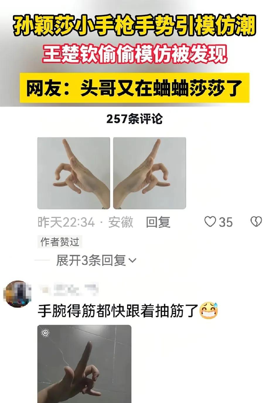 孙颖莎果然是热搜体质! 昨天厦门乒乓联赛开赛后,孙颖莎一个手势直接火上了热搜, 连王楚钦在台下看到后也不停的模仿, 真是应验那句话 ,没有哪个白眼是无辜的 更有网友评论说:模仿了一天手都抽筋了! 果然有莎莎在的地方就有热搜,连简简单单的一个手势也能被网友刷爆朋友圈。