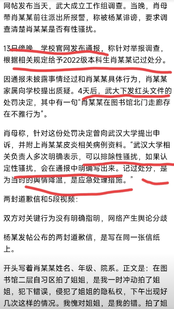 可以说,肖某某被网暴,以致社死,这份处分决定,起到了关键作用。武大在没有确凿证据,甚至已经排除性骚扰的前提下,出具这份处分决定,不仅仅是违规行为,更是在靠抹黑学生来达到洗清自己的目的。武大这波操作,实在有损自己顶尖985的身份。