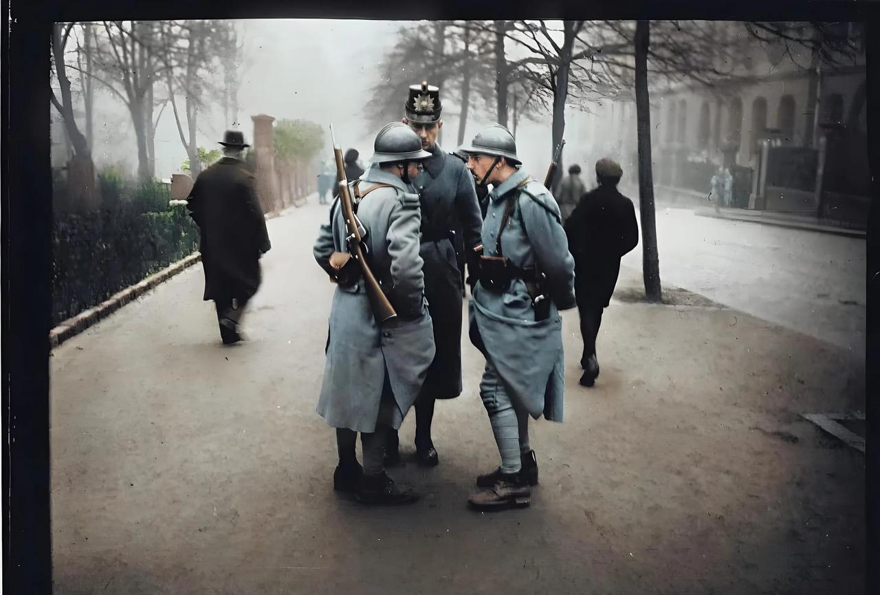 1923年,在德国西部北莱茵-威斯特法伦州的埃森街头,德国警察与法军凑在一起窃窃私语;他们神情似乎很紧张,不知他们在干什么。有的网友说他们在做货币买卖,还有的网友说他们在毒品交易。这两种说法应该是不可能的,因为在历史资料中从没有记载过法军和德警有过类似的违法行为。 你能认出那个是法军、那个是德警吗?他们身上背的是什么枪?#牢记历史爱我中华# #分享真实的历史#