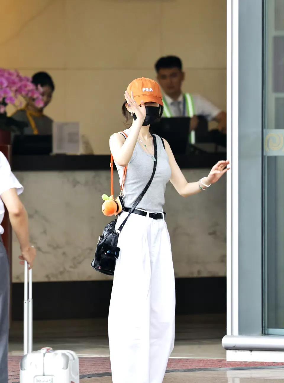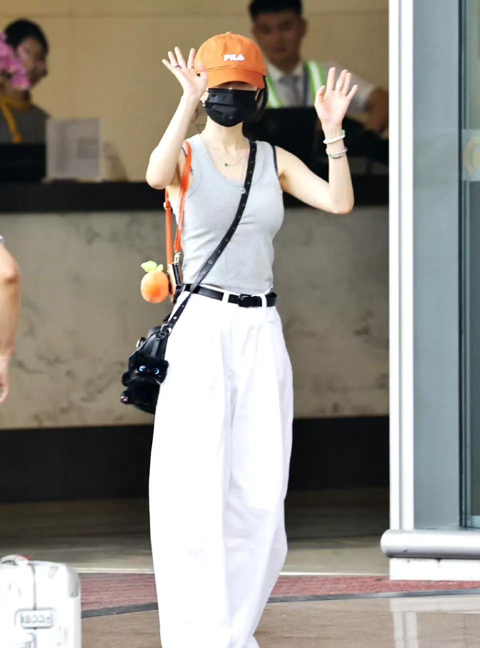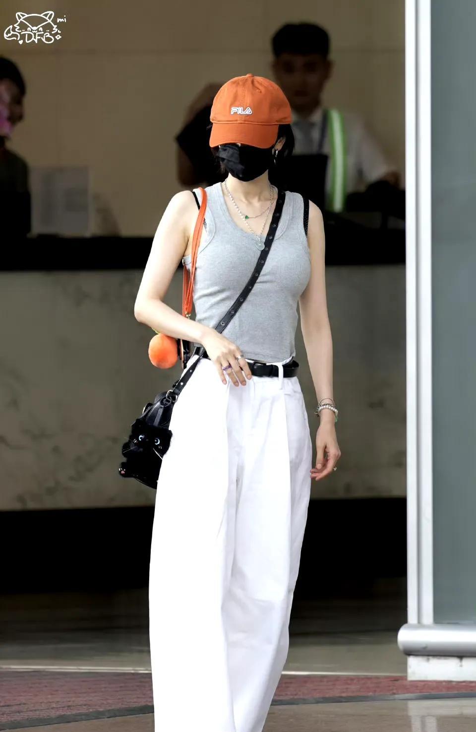 她明明知道自己胸大腰细。还喜欢把包带放在胸中间,显的胸更大了。不愧是国民女神,一直稳居一线的女明星,都快40岁了,身材还那么好,完全是少女级别的好身材,灰色背心,露出里面的黑色内衣带子,有点性感,看起来身材贼好。