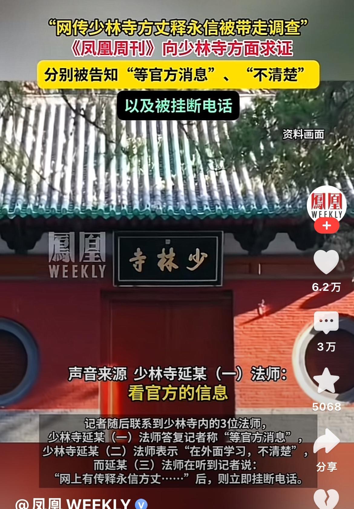 据凤凰网报道,被称为“披着袈裟”的CEO——少林寺方丈释永信已经被有关部门带走接