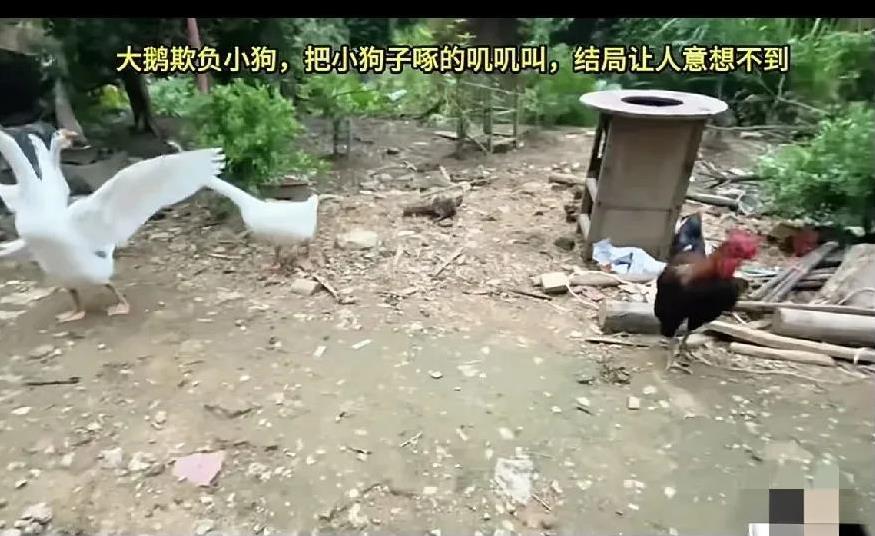 闲着没事儿我翻看了一下我家监控,这一看不打紧,看了惊掉我的下巴。 就见院子里,我家一只大鹅正在一口一口的啄我家小旺旺,看样子啄的很疼,小旺旺一声不叠一声的嚎叫。 甚至有一下小旺旺都挣脱大鹅跑了,谁知又被大鹅紧追两步又给啄翻在地,给我看的这个着急呀!恨不得钻进监控里揪住大鹅。 正在我焦急万分的时刻,英雄横空出世了。 就见我家大公鸡忽然从天而降,飞扑到大鹅身上将它两下子就给吓跑了,小旺旺得救了。 大鹅则尴尬的回到它的小鹅群里,强装镇定的伸了伸长脖子,抖抖翅膀,若无其事一般,就当什么也没发生一样。 看到这幕我是又好气又好笑,气的是大鹅竟然欺负小狗。 笑的是我家大公鸡路见不平,能够飞扑上前救小旺旺。 等我回去一定好好犒劳一下我家的大公鸡,关键时刻真上啊。