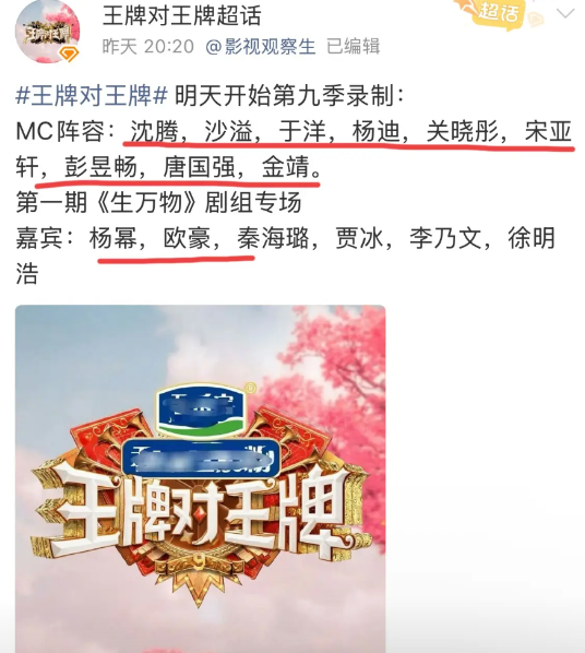 7月27日,沈腾回归《王牌对王牌》第九季,一共九名常驻嘉宾,都快赶上跑男了! 沈