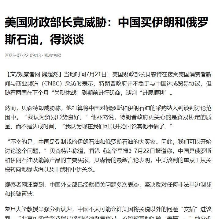 最近,特朗普政府再次发出了毫无根据的呼声,美财长在采访中竟然公然要求中国不要购买俄罗斯和伊朗的石油,所谓的理由就是为了维护美国的利益。这种干涉他国主权的做法,真让人忍不住想问:美国到底想干什么?