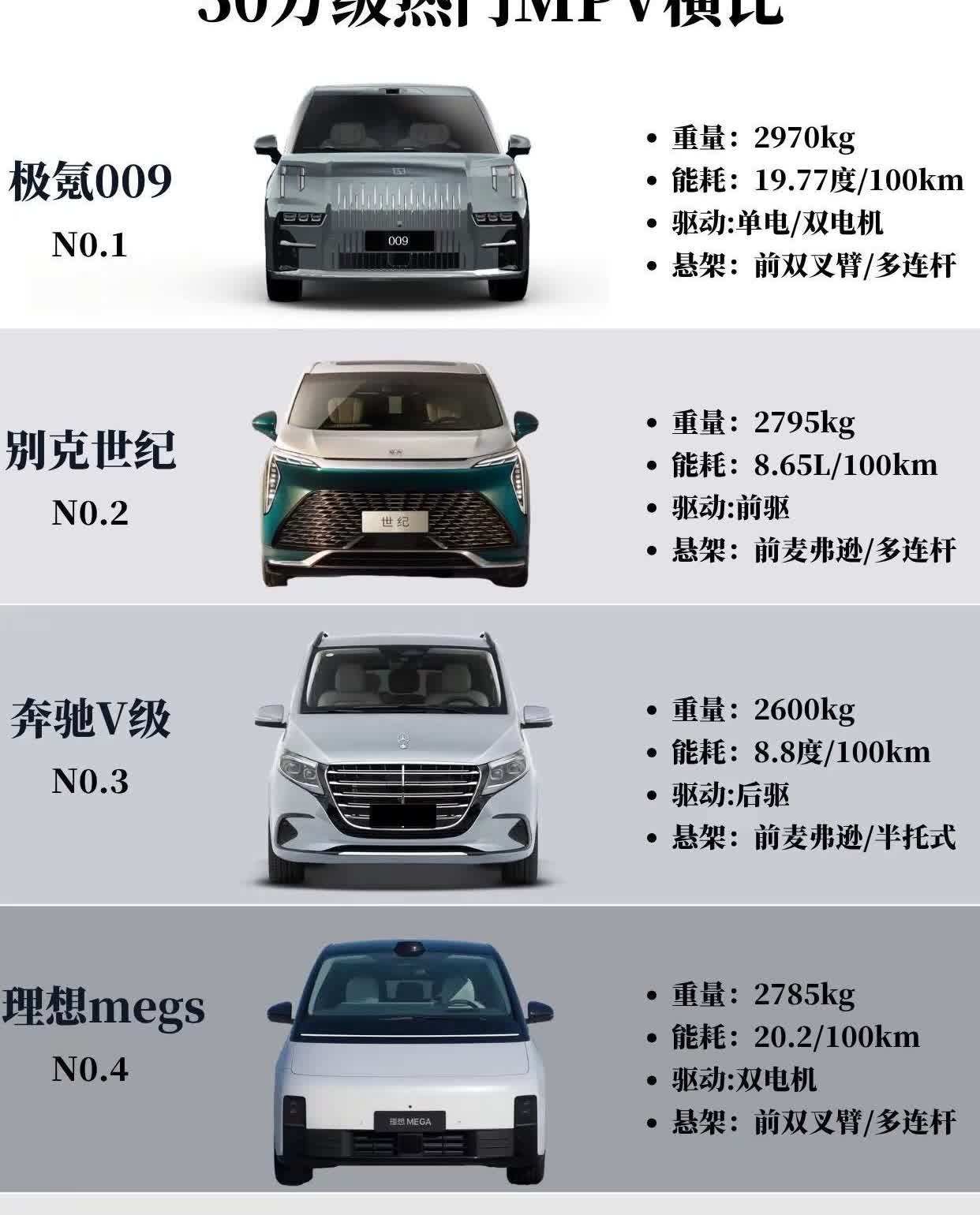 50万级热门MPV横向对比,各项参数的详细对比。