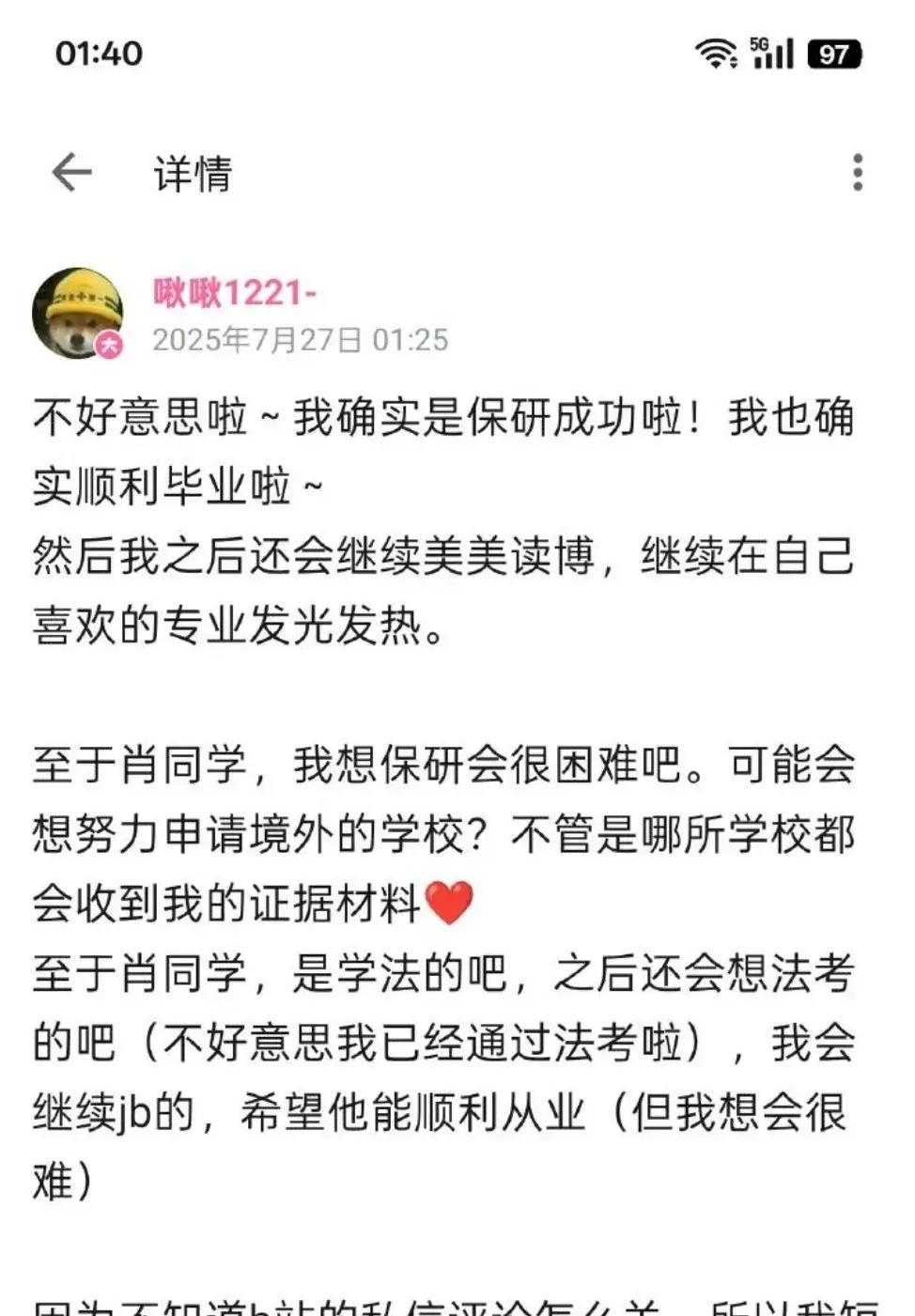 那么她当年的行为是不是可以理解为处心积虑要保研资格呢?学校不出来走两步?