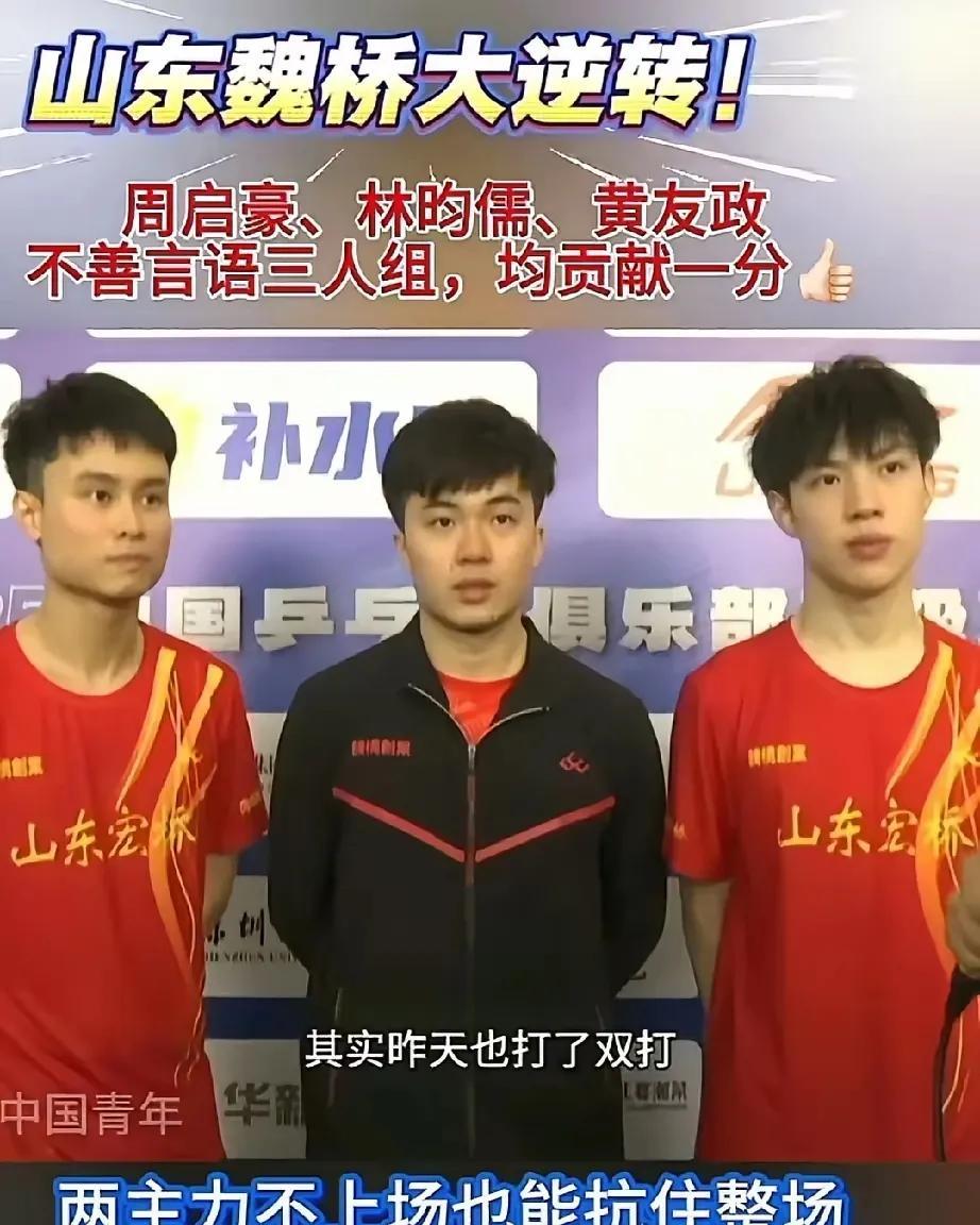 破天荒,头一回。没想到山东魏桥也有最后下班的一天,今天上午场山东魏桥可谓是又惊又喜的一场比赛。 山东魏桥今天以前乒超联赛两个阶段已经拿下了九连胜的战绩,昨天大胖因伤退赛,山东魏桥单打缺了一位右手主力,王楚钦和林昀儒两位左手还是非常顺利的战胜了山东鲁能。 昨天晚上山东魏桥对阵先锋乒羽,第一盘周启豪、黄有政1:3不敌周雨、费浚航。 第二盘王楚钦3:0轻松战胜敖华磊,三局比分11:2、11:6、11:7,三局比赛敖华磊一共才拿了15分,王楚钦绝对实力碾压。 第三盘黄有政3:2费浚航,前面四局双方打得十分胶着,决胜局黄有政突出了自己的优势为团队11:4拿下第二分。 第四盘王楚钦对阵周雨,实话实说周雨昨天晚上对阵王楚钦这一场比赛发挥得非常棒,也成功给王楚钦制造了麻烦,王楚钦赢在关键球处理得当,还有他可以预算到周雨发球的落点,王楚钦从而以3:0战胜周雨。 今天上午的比赛山东魏桥对阵安徽中程单招基地,也许山东魏桥觉得已经拿下九连胜了,晋级没有问题,可以锻炼一下小将了,竟然安排王楚钦轮休,这个赛前还真的没想到。 第一盘周启豪搭档林昀儒对阵安徽中程郭勇、温瑞博,第一盘比赛结果山东魏桥2:3负于安徽中程。 第二盘黄有政对阵牛冠凯,对于王楚钦来说手心手背都是肉,亲弟黄有政1:3不敌牛妈,山东魏桥也可以连丢两分的吗?山东魏桥可是王者之师哦!两员实力大将没上场,是不是今天就会输了比赛。 第三局林昀儒对阵温瑞博,对于林昀儒来说,第一盘双打已经输了,如果这一盘再次输了,山东魏桥可要刷新今年乒超联赛的比赛记录了,山东魏桥会不会上热搜,这一盘十分关键,林昀儒在内心一定不想成为丢分的罪魁祸首,林昀儒3:0战胜温瑞博,成功为团队扳回了一分。 第四盘黄有政3:0拿下郭勇,自己丢的分,自己再一分一分挣回来,林昀儒做到了黄有政也做到了。 决胜局周启豪对阵牛冠凯,今天的七号有点超水平发挥,第一局4:4后周启豪连续拿下五分,比分来到9:4,第一局比赛结果11:6。 第二局从2:2到7:2又是七号一连串的得分,这样的比分对手内心肯定会有变化,第二局周启豪11:6再下一局。 第三局周启豪4:1的开局,这一局七号继续延续了前两局的气势11:5山东魏桥在大比分0:2落后的情况下奋起直追,恭喜山东魏桥成功逆转3:2拿下比赛。今天的开局很惊险结果很美好,再次恭喜山东魏桥乒超联赛是连胜。 图片来自网络侵删 #晒图笔记大赛#