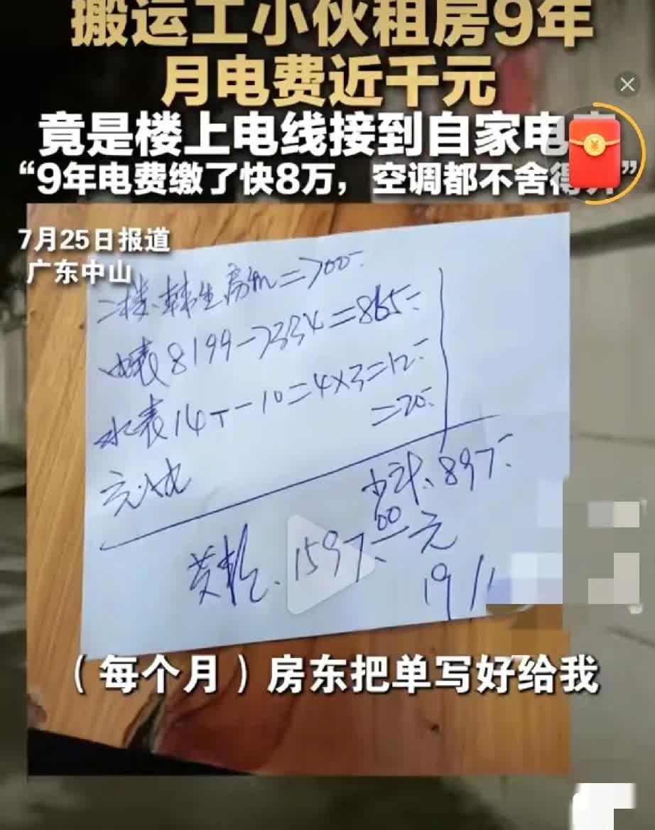 广东中山一男子,租房九年,共缴纳电费近8万元,在最近的两个月电费近千元,找电工不