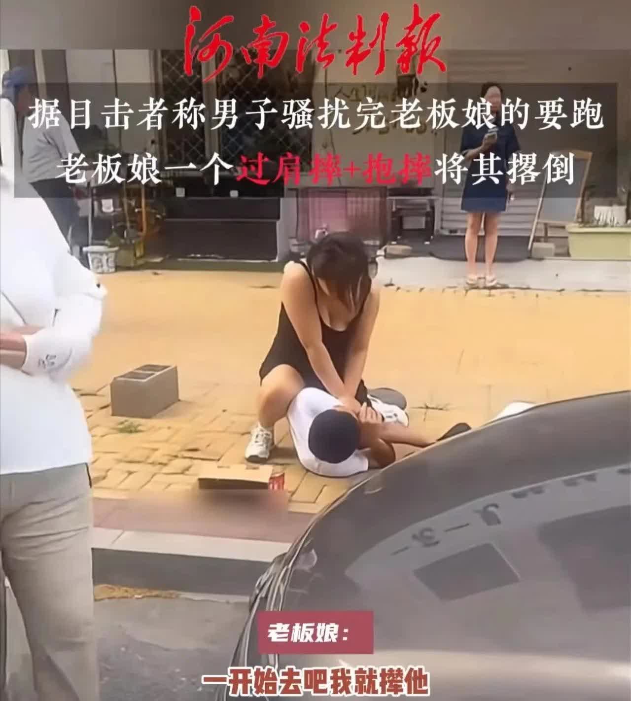 “居然敢调戏东北娘们!”辽宁大连,按摩店老板娘身材火爆,男子频繁上门骚扰!这天,男子占完老板娘的便宜想跑,老板娘忍无可忍,一个过肩摔+抱摔将男子撂倒在地后坐其身上,画面太精彩!网友:白嫖不可能! 在大连辽宁的一家按摩店里,有位老板娘因为身材苗条又健康,总是很受客人喜欢。可是呢,有个人,姓王,这一年来老是来骚扰她。直到有一天,他想动手动脚,结果被老板娘当场就给制住了。 这位老板娘个子不高,但身体倍儿棒,店里生意好,大家评价也高。可自从王某老来捣乱,她的日子就不好过了。王某又是说些轻薄的话,又是用那种让人不舒服的眼神看她,有时候还在店里赖着不走。老板娘一直忍着,直到那天王某真的动手了。 这下可把老板娘惹火了,她一下子冲过去,动作快得跟飞似的,先来了个过肩摔,接着又是一个抱摔,把王某结结实实地按在地上,自己坐在他身上,瞪大眼睛看着他。整个过程都被监控录下来了,看起来真是大快人心。警察很快就来了,把王某抓住带走了。老板娘勇敢站出来,不光给自己出了口气,也让边上的人都吓了一跳。她可不是好欺负的,而是个敢于站出来保护自己的女强人。 后来,王某因为性骚扰被警察抓去关了几天,老板娘这事儿在网上火了,大家都叫她“大连侠女”。法律也说了,性骚扰这事儿,轻的关几天罚点钱,重的还得坐牢呢。这次,正义来得刚刚好。