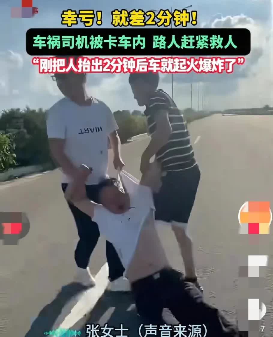 七月25日在河南省驻马店一段公路上,一个男子因为车祸,把自己卡在了车里无法动。 这时张女士和伙伴正巧路过此地看到,他们正准备上前帮忙时,又来了一个热心的司机师傅。 张女士的伙伴和那个司机俩人合力把卡在车里的男子拉出来。 张女士说,就在他们把车里的男子拖出来2分钟左右,那辆车就全部燃烧了起来。 有网友说,男子太幸运了遇到了两个热心的过路人把他从车里拉出来,如果再晚一点的话后果不堪设想。 有网友说,救人的那两位男士,就是上天派来的天使,他们不惧危险去救人,好人一定会有好报的。