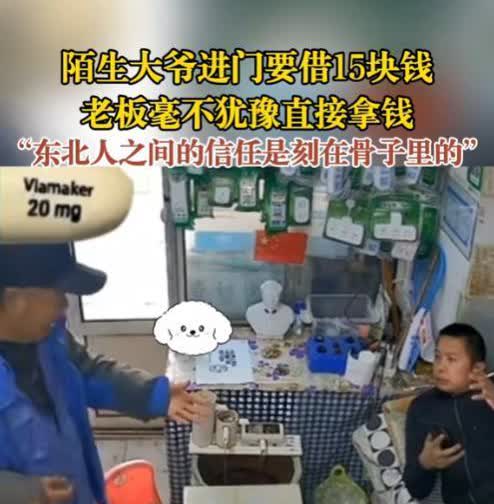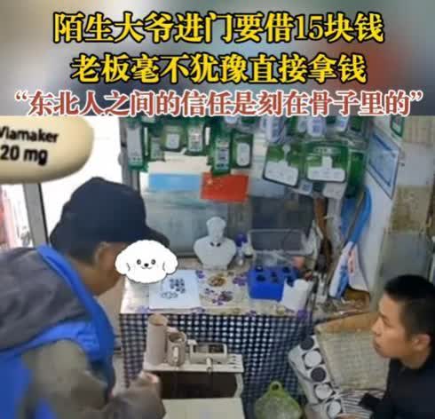 一个敢借,一个敢借!长春,一男子在看店,突然一个陌生的大爷进门想借15块钱,男子毫不犹豫就拿出15块钱给了大爷,而事情的结尾让老板毫不意外。网友:东北人之间的信任是刻在骨子里的! 10月18号,在吉林长春的一个小店里,老板范大哥正悠闲地躺在沙发上玩手机呢,突然门被推开了,进来一位大爷。大爷张口就来:“小伙子,能不能借我15块钱?我想买点东西,一会儿就回来还你。” 范大哥一听,啥也没问,二话不说就从沙发枕头下摸出15块钱递给大爷,还贴心地问:“这些够不够啊?”大爷拿了钱扭头就走,可没过多久,又急匆匆地跑回来,把钱给还了。前后加起来不到十分钟,但他的举动就像一股暖流,直戳人心窝子。 这事儿被人拍下来发到了网上,一下子就火了。有人打趣道:“就为了15块钱,至于吗?”但更多人从这简单的举动里读出了不一样的味道——那就是信任。 没错,15块钱确实不多,买杯奶茶都不够,更别提吃顿饭了。但这份毫无保留的信任,却让不少人心里暖洋洋的,眼眶都湿润了。现在这个时代,骗子到处都是,就连熟人都不一定敢信。但有这么个事儿,一个陌生人,张口就借了15块钱,说话间就借了,后来也很快就还了。 这可不是因为傻,而是心底那份纯纯的善意,还有东北人那股子直率和信任劲儿。 结果嘛,就像范先生想的那样,那钱,一分不差地回到了手里。网友们说:“东北人的信任,那是天生就有的。” 也许,就是因为这种实实在在的信任,让我们还心存希望,觉得这世界其实也没那么差。