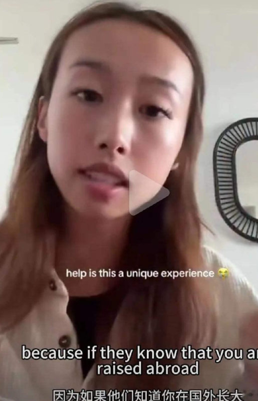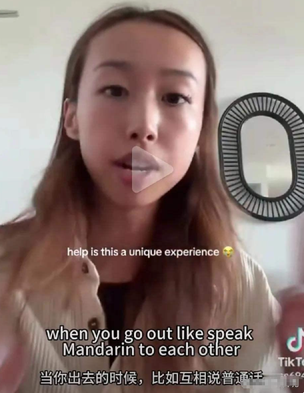 一位澳籍华裔女孩在Tiktok上说:“我父母从小就告诉我,当我们回到中国时一定要讲普通话,不要讲英语,就当什么事也没有发生。”