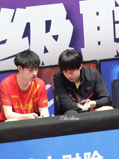 王楚钦场外耐心与黄友政复盘比赛! 短短一年的时间蜕变,从那个锡纸烫小男孩,跟着龙队后面腼腆的小可爱! 总说自己不够好,不够优秀,反省自身!但是王楚钦,你真的很棒! 你对国家对团队有责任感,对梦想有热血的拼劲!你继续加油,时间自会证明! 能被时代记住的不只是成绩,还有对后辈的传承!为国家荣誉而战,为团队出力,为后辈传递经验! 国球是因为好的传承才有现在的辉煌成就,不是一个人的功劳,是一群人无私奉献才有的现在和未来!王楚钦已正在这儿发光发热![加油][加油][加油]