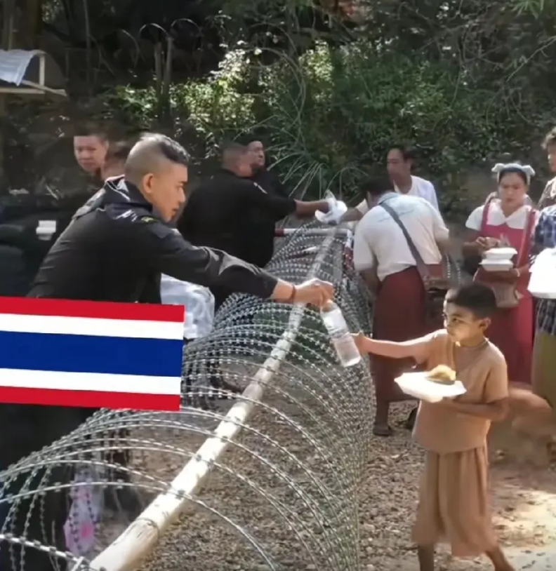 泰国黑衣特种部队,为柬埔寨平民发放食物和水,泰军表示不打平民只打军事基地 打仗只