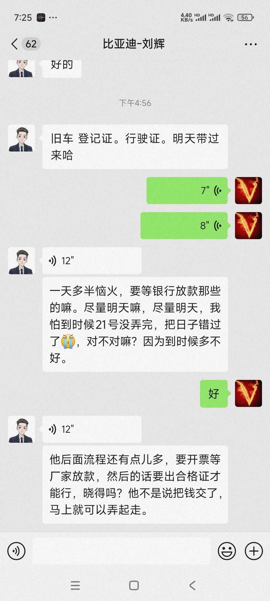 熬了一个多月。还是准备提车了 从七月开始,这个车只有一万的现金优惠了,但是我还是1.35 但是我是6.23号,交了定金2000,一直拖到现在才交车 原来是准备6.30号提车,当时有区补,但是4s店没有最低配我想要颜色车。只能说7.5号左右有车 但是一到七月份,区补2500就停了,我想等一等还有没有区补,我们看好了日子7.21号。现在就在犹豫买不买 现在最尴尬的事,我买车的4s所在的区域没有区补,其他的地区有区补,但是区补只有一千,而且其他的区域咬死只有一万的优惠,加起来也就1.1 其实我是不着急用车的。但是我手上有个报废补贴的,我怕过期,报废车已经过了年检了。而且我想了一下,这个车现金优惠1.35也顶天了,以后我在想也不会超过这个金额,而且区补现在也就只有一千了。索性就把车提了吧 报废2,现金1.35,厂补1,以前有个0.25的区补,现在没了,这个车落地9.98-4.35=5.63+0.5=6.13 然后24年12.30号买了个报废车花了我0.5,报废只给0.14,相当于0.36买了个手续,这个车是比亚迪f0,只有0.8吨。 所以说这个车办下来刚好6.5左右。 我现在还是在想,可惜拿了2500,相当于提了一个茶色的车子,多花了2500,唉