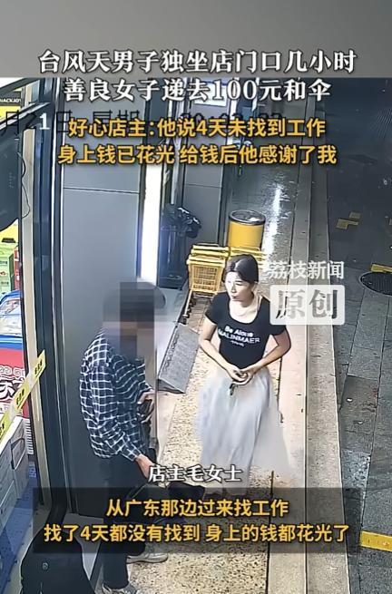 活该这老板发财!7月22日福建,一场大雨突然袭来,老板娘无意中看到一个全身湿透的男子坐在店门口,雨水顺着他的衣服流下,看着无助的样子,她本能地觉得应该帮一把。没想太多,直接递给他一把伞,还主动给了100元钱,让他先解决眼前的困境。原来,这位男子是外地来找工作的,结果无家可归、身无分文,完全不知道接下来该怎么办。网友:被老板娘暖到了! 据荔枝新闻报道,7月21日福建漳州街头,一位外地男子怀揣着找工作的希望而来,却在台风天里陷入绝境,而零食店老板娘毛女士的一个举动,成为照亮这场困境的光。 那天男子背着黑色背包,穿着虽整洁却难掩疲惫,孤零零坐在店门口,他并非刻意停留而是4天求职无果,身上的钱已花光,饥寒交迫又无家可归,台风天的街头,成了他走投无路的“容身之所”。 男子木讷地坐着,眼神空洞,仿佛被这座城市的风雨彻底浇灭了希望,而这一坐就是五个多小时。 毛女士在店内留意到男子异常的状态,出于本能的关切,她拿着伞走向男子想让他能回家,男子苦笑拒绝时,绝望的语气他表示:拿伞也没用,自己是来找工作的,没成想工作还没找到,身上的钱也花光了,听完让毛女士心里一揪。 那一刻毛女士眼眶泛红,她迅速回到店里从收银台拿出100元现金,快步塞到男子手中,还不忘叮嘱他去吃口热乎饭、找地方歇脚,男子攥着钱,嘴唇哆嗦,哽咽着道谢撑伞离开时,一步三回头,像是要把这份温暖牢牢记在心里。 后来毛女士查看监控,发现男子在店门口苦熬五个多小时的画面,泪水瞬间夺眶而出,她心疼这个陌生人在绝望中独自承受的煎熬,也欣慰自己的小小举动或许能成为对方人生低谷里的支撑。 这件事被报道后,网友们纷纷感慨。有人说“老板娘递出的不仅是伞和钱,更是在拉一把身处深渊的人” ,也有人直言“活该这样的老板发财,善良的人就该被生活善待”。 然而在现实里,我们听过太多“世态炎凉”的故事,可毛女士的善举,却像刺破阴霾的阳光。男子身处绝境,是城市风雨里的“孤独漂泊者”,而毛女士没有犹豫、没有漠视用最直接的方式给予帮助,让善意在困境中真实落地。 这不是一场刻意的“公益表演”,就是普通人遇见他人苦难时,心底的善念自然流露,在当下快节奏又略显“冷漠”的社会氛围里,这样的故事太珍贵,它让我们看到即便生活有诸多不易,仍有人愿意为陌生人停下脚步,伸出援手。 而毛女士的100元与一把伞,看似微小,却在男子的绝境里,成为重启希望的力量,这也让我们明白,善意从不需要惊天动地,一个真诚的举动,就能成为他人生命里的“救命稻草”。 那么你怎么看待这件事呢?是被毛女士的善良打动,还是从男子的遭遇里,看到了生活不易的影子?不妨在评论区聊聊,让我们一起接住这份温暖,也传递这份对善意的思考。 信源:荔枝新闻