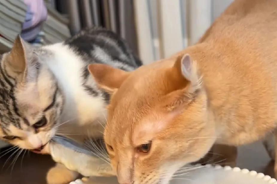 两只小猫吃鱼,众多网友受教!近日,一位网友发布了自家两只小猫吃鱼的视频,引起了网