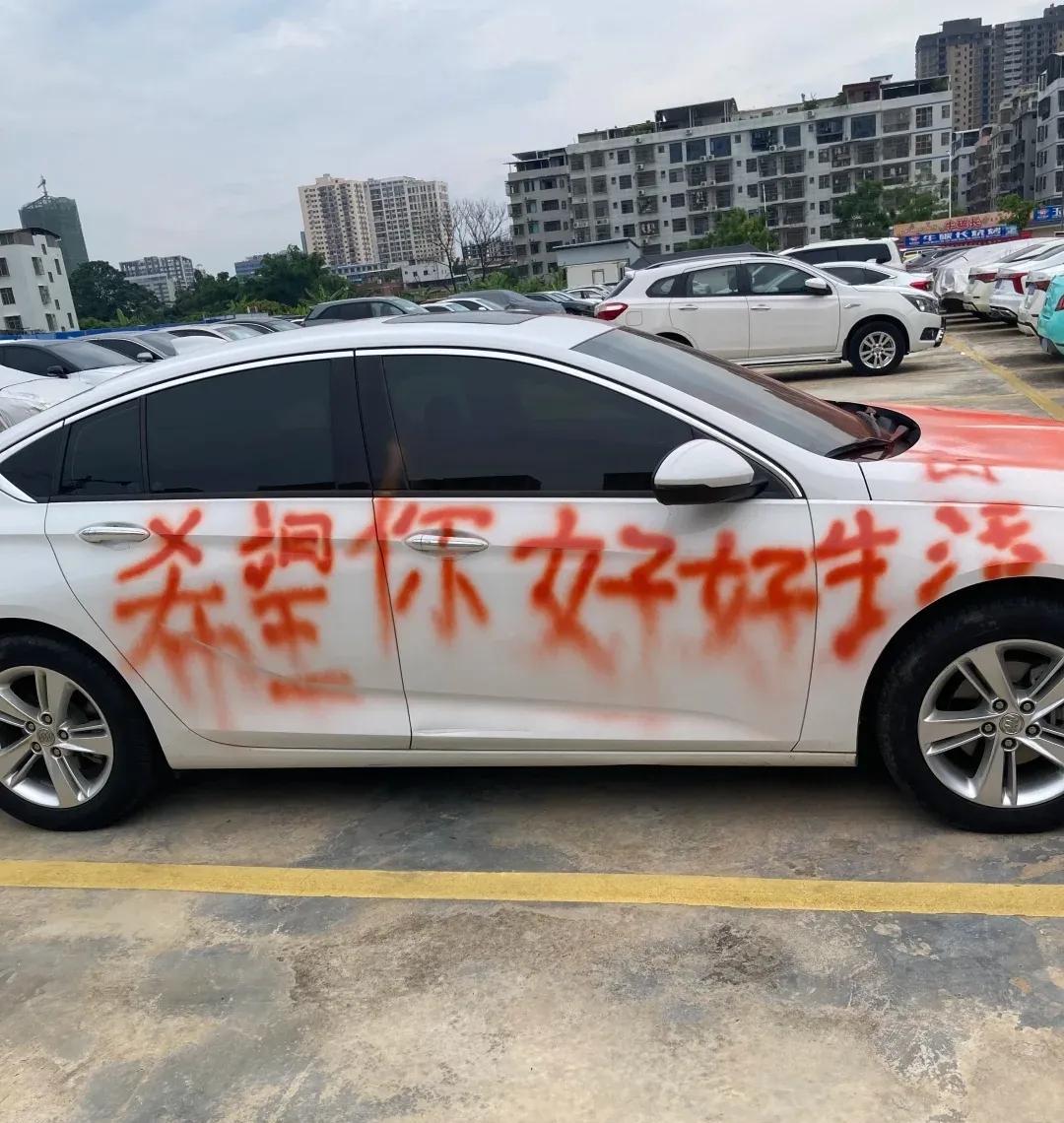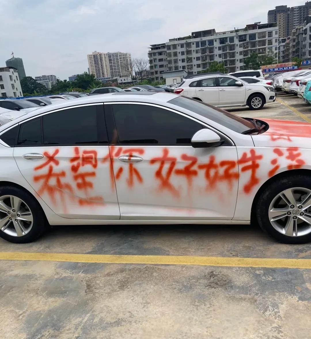 没认识我老公之前,我也是被渣男伤过的,同事谈了个对象,结果他是渣男,一气之下把他车子给他用油漆喷成这样,我感觉这辆车要报废了,一开始同事是个恋爱脑,给她男朋友花了将近100000块钱,后面她才发现她男朋友特别花心,不止一个女朋友,有很多个女朋友,这就是报复渣男的最正确的方式。#这样渣男以后就不嚣张了呀#