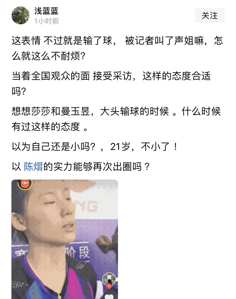 赢谁, 也不能赢孙颖莎! 否则, 就要接受她粉丝没完没了的诋毁! 陈梦就不用说了, 王曼昱也不用提。 咱们看看小将陈熠, 美国大满贯赛事赢了孙颖莎, 算是彻底捅了马蜂窝, 从赢的那天起, 孙颖莎粉丝攻击她的小短文就没停过。 看看她们的留言多多恶毒! 这是一个神秘组织啊, 到底有没有人能管得了? 乒乓球能有今天, 真得感谢那谁。