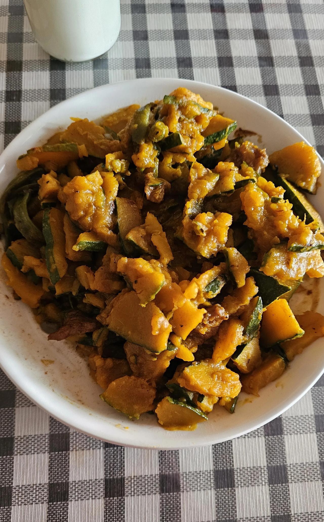 老公中午给我做中饭了,炒了一个菜。[大笑][大笑] 今天上午打扫的客户家离我家骑车大概要15分钟。 早上走的时候跟老公说了,我说你中午煮点饭,我中午回来吃饭。 到家他饭已经煮好了,炒了一盆南瓜。 这南瓜是我前天晚上吃了一半,剩一半放在冰箱的。 回家就有的吃的感觉真好。[大笑] 中午孩子他们都在单位那边吃,我们两个人一盆菜也够了。 感觉老公比之前脾气好多了,也知道心疼我了。 他就是嘴上不说,心里好像也有数。[大笑] 我们两个边吃边聊,我说:“我负责挣钱,你负责在家里弄家务好吧。” 他看着我半天没有回答[捂脸][捂脸][捂脸]