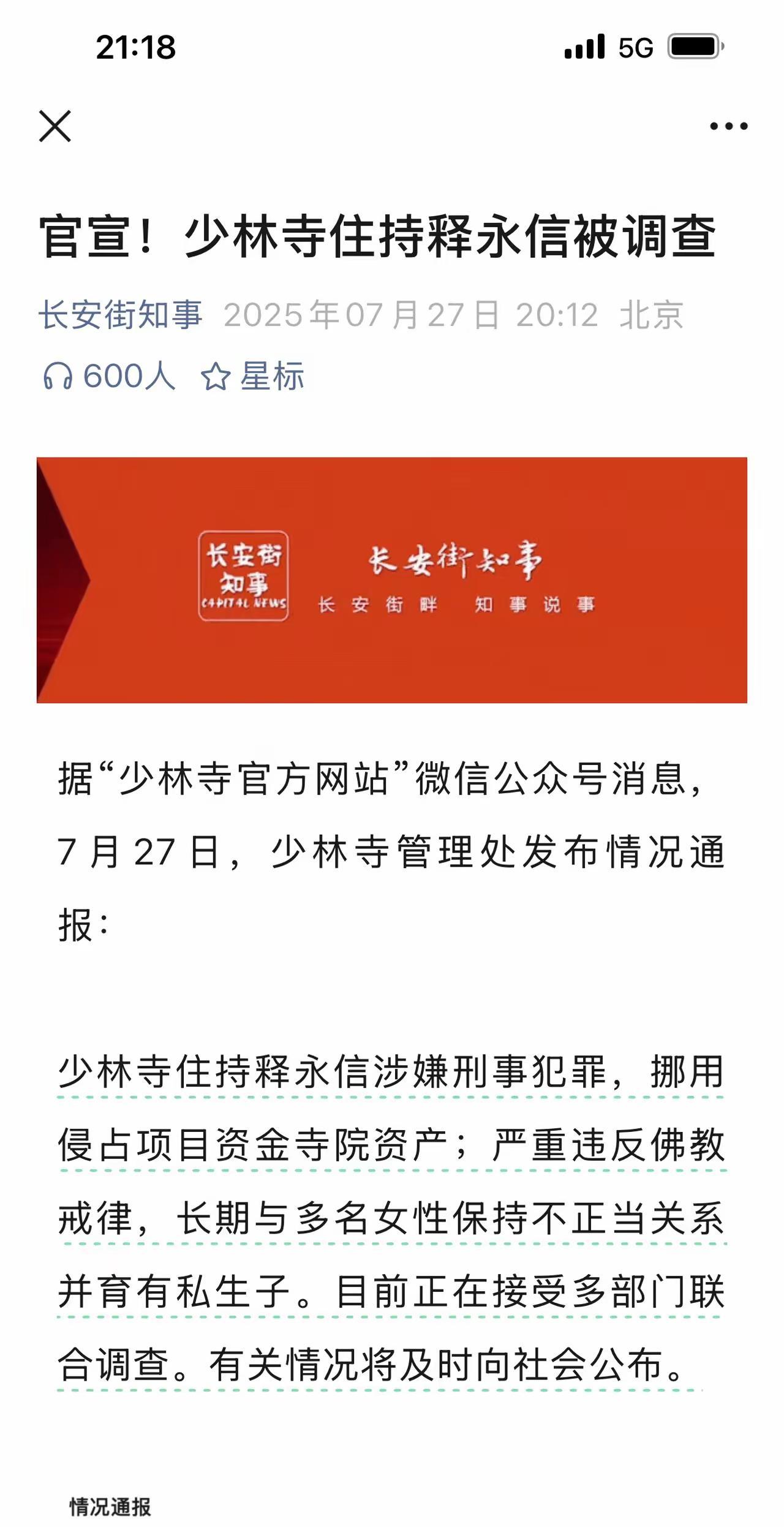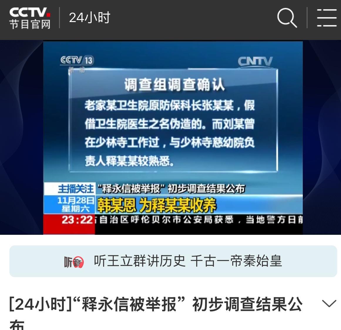 十年前就有人举报过释永信,当时央视新闻24小时还做过专题报道,调查结果是造谣,释