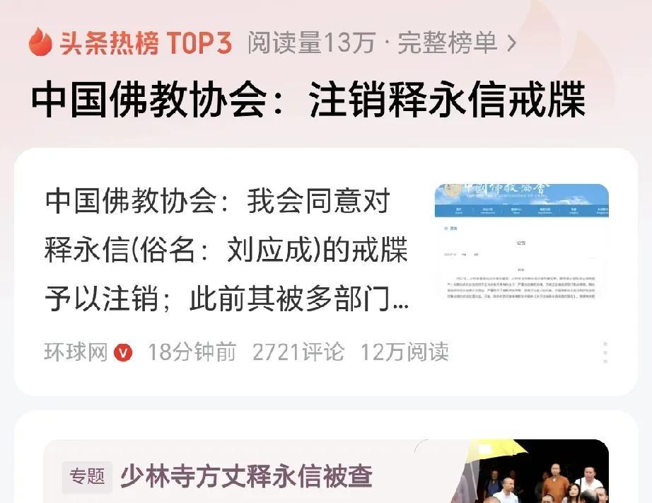 永信大师被注销戒牒 他,已永无翻身之日了! 他的所作所为,在佛家会下炼狱吗? 据