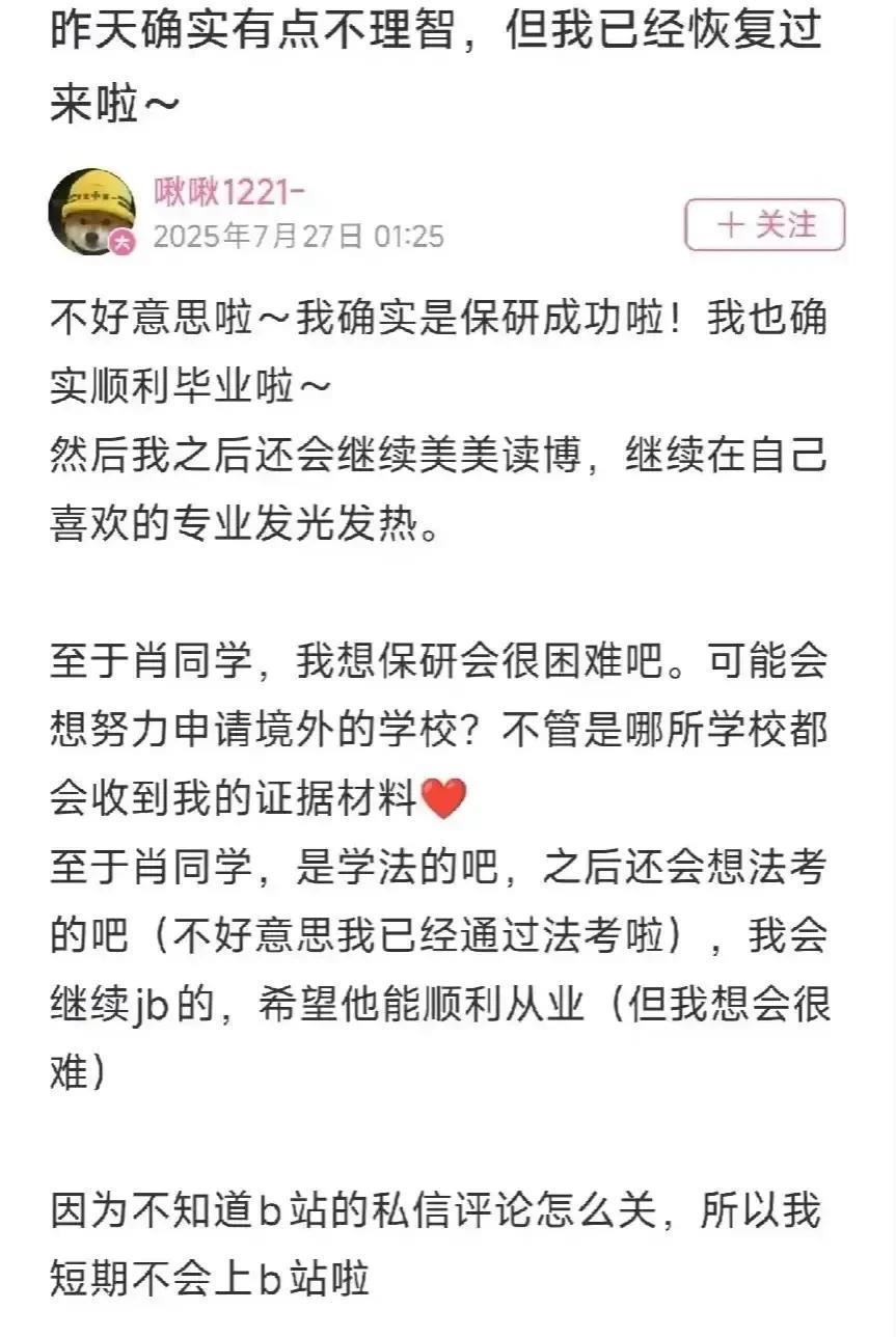 我刚刚看了,一开始以为是拍了别人照片,被要求道歉,然后害怕被处分,失去保研才写到…说实在一般人遇到有顾忌的事情都会很胆小,想息事宁人!所以。。。