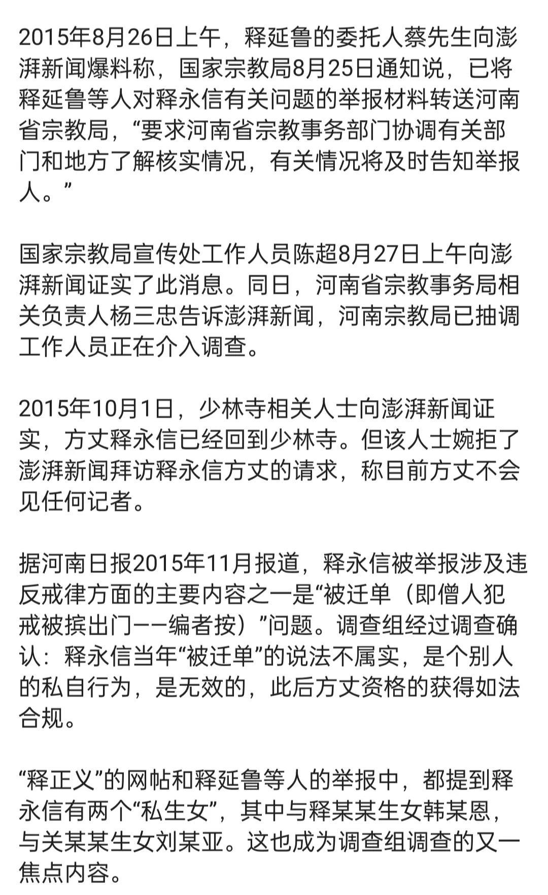 观网转发的《河南日报》对十年前举报少林寺方丈释永信的“前因后果”,里面叙述的人际关系和情况说明过于混乱,看的人稀里糊涂。如果您不怕脑仁疼,可以看一看。