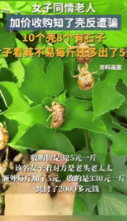 “坏了良心!”陕西铜川,一女子收购知了壳,看卖家是个老人,就将原本325元1斤的