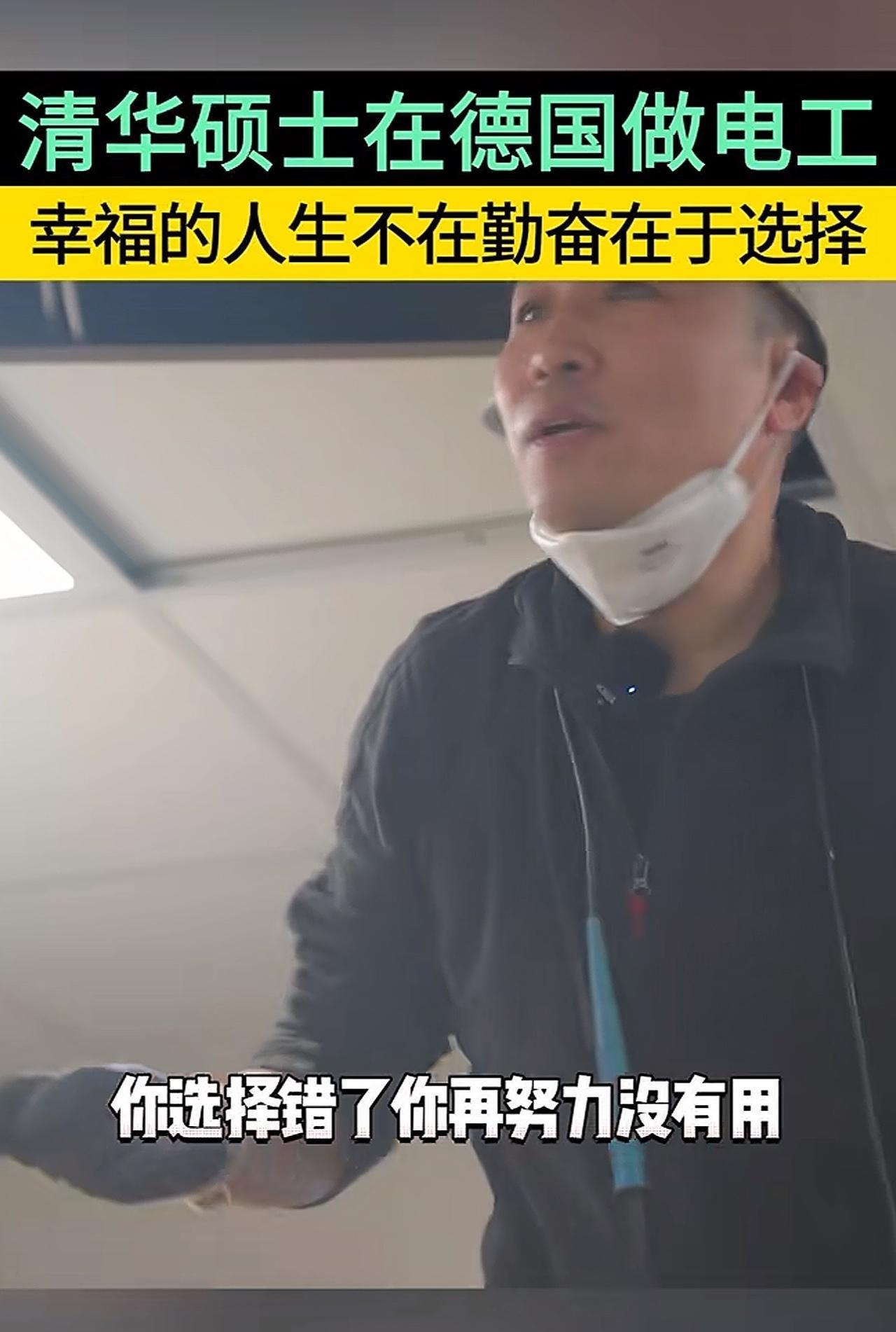 #MCN双量进阶计划# “这太清醒了!”一位清华大学管理硕士毕业生,曾在国内单位企业高管,后因职业瓶颈,选择移民德国,转型做电工的视频在网络曝光,引发关注。 据这位清华硕士说:“在德国没有年龄歧视,做电工每日下午4点下班,无加班文化,享有充足家庭时间陪伴妻儿。居住居住200平别墅带500平花园,失业了,可以领失业金1.6万。通过培训,考试通过后还会奖励1000欧元。你人生不在干勤奋在干选择,你选择错了,再努力没有用!” 此视频曝光之后,不少网友纷纷表示,“清华硕士在德国做电工,没什么不好,只要收入ok就行,做电工没有年龄歧视,而且年龄大一点更有经验更靠谱!” 看了这位清华硕士的选择,周少其实挺感慨的。他不是没能力,能做到企业高管,又能拿下德国电工资格,本事肯定不差。 有意思的是,他把“选择”看得比“勤奋”重,这背后藏着一层意思:有时候不是你不够拼,而是所处的环境有没有给你想要的生活。 比如,他说的不加班、年龄不设限,还有失业保障,这些听起来不像“天上掉馅饼”,更像是一种规则里的安全感。国内职场里,多少人卡在“35岁门槛”,又或者被“996”拖着没时间陪家人? 倒不是说国外啥都好,只是他选了一条能平衡工作和生活的路。正如这位清华硕士所言,你人生不在干勤奋在干选择,你选择错了,再努力没有用! 不过话说回来,每个人想要的不一样。有人觉得名校毕业就该干“体面”工作,有人觉得日子舒服比啥都强。就像这位清华硕士毕业生一样,选择去德国干电工。 你觉得,要是换作你,会怎么选?#长沙新朋友# #寻美三湘#