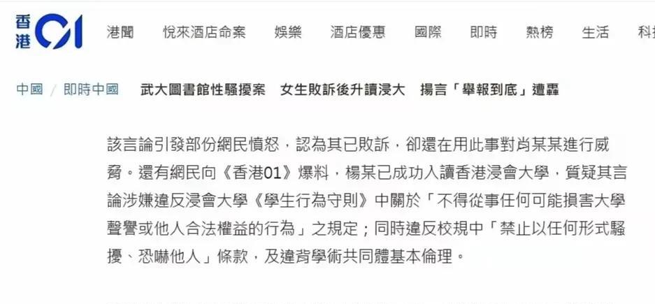 港媒也开始报道武大图书馆诬告事件了,还有人去杨某某在香港读书的学校追问,如追问下