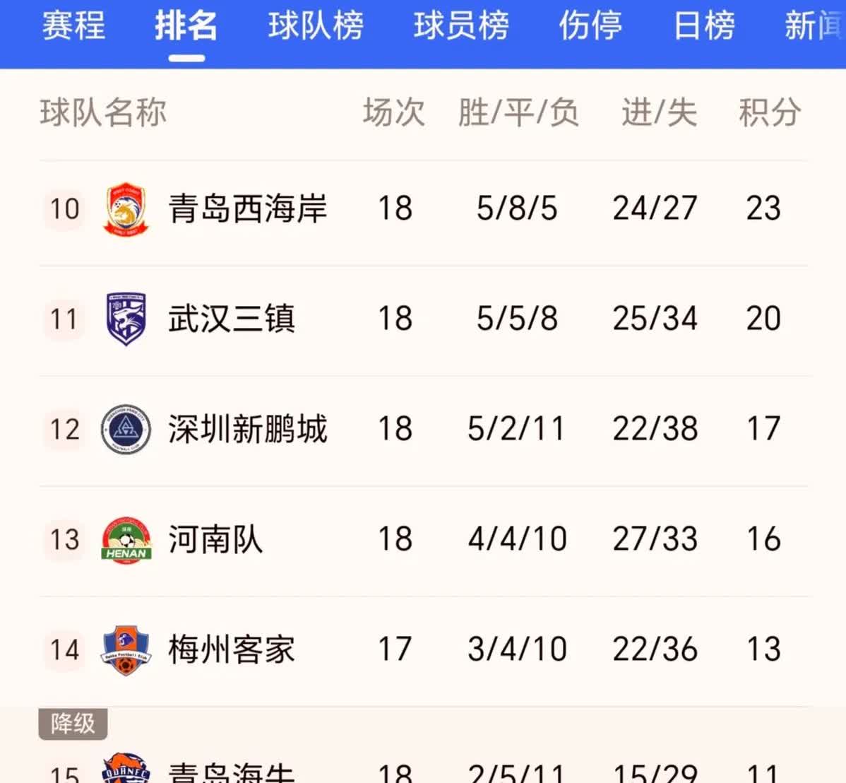 重磅消息!中超联赛最新积分榜出炉!上海申花队以3:2击败河南队积分暂时领先排名第