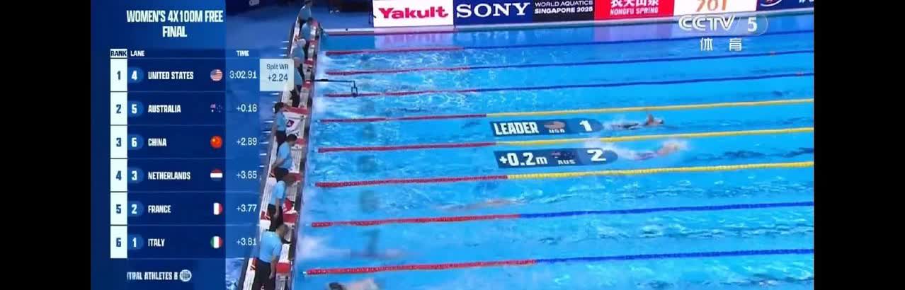 中国队女子4x100米自由泳接力遗憾获得第四名! 刚刚结束的2025世界泳联世