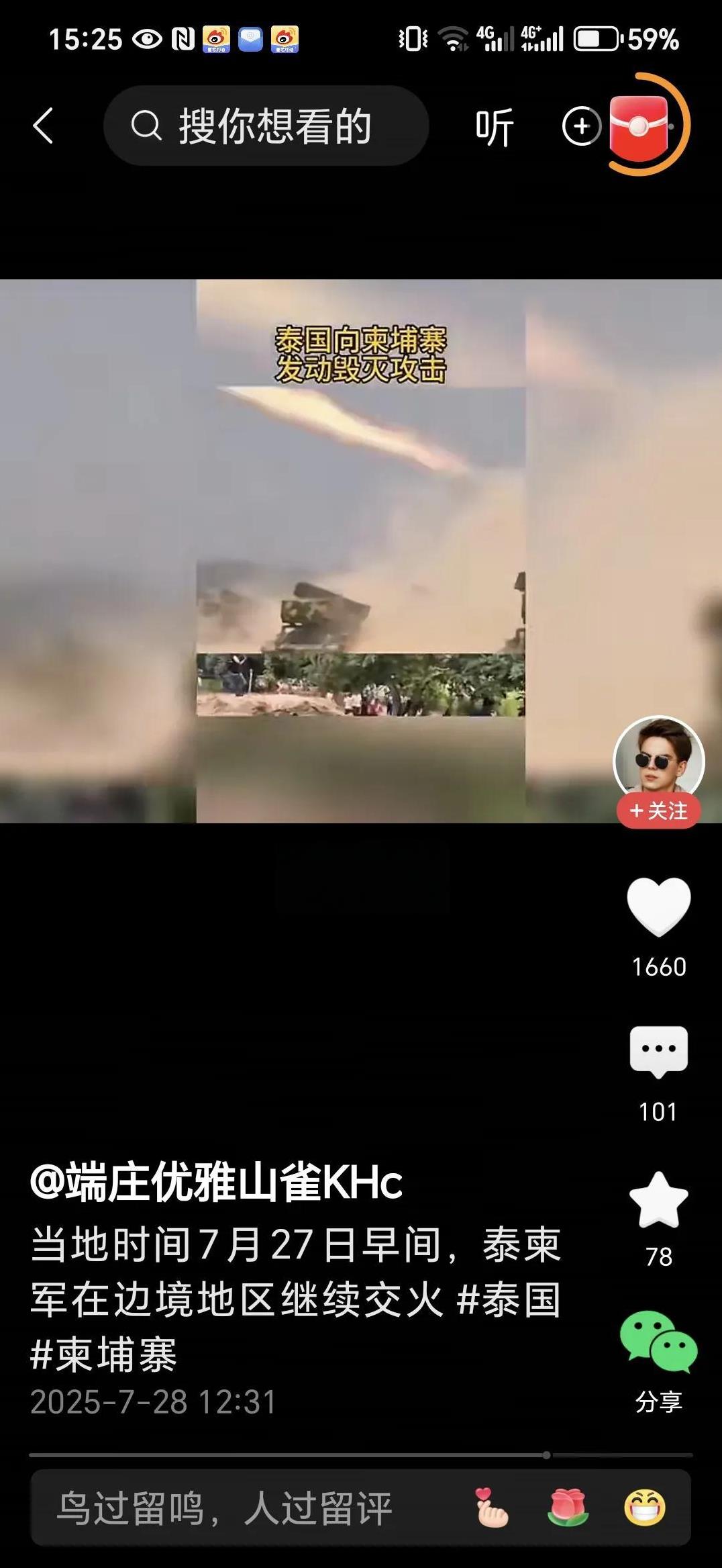 柬埔寨军队发起猛攻 7月28日。 柬泰边境冲突已进入第5天, 泰国方面指责柬埔寨