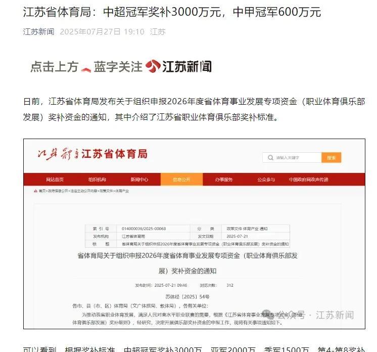 江苏媒体的体育报道错误百出,把南通海门珂缔缘写成中甲保级组第10,还遗漏了南通支云的奖金。 南通海门珂缔缘从来没有参加过中甲联赛,上赛季是中乙争冠组第10名。 上赛季,海门珂缔缘拿到了中乙北部赛区第二,进入争冠组,最终名列中乙争冠组第10。江苏媒体写成了中甲保级组第10,完全颠倒了黑白,中甲根本就没有区分争冠组和保级组。 此外,根据奖金规则,中超第15和16名,可以获得400万元奖金。南通支云是上赛季中超第16名,应该有400万元奖金。关于这一点,江苏媒体自己的报道也写了。 但在最后,江苏媒体却说,江苏球队无中超球队享受奖补,自相矛盾。 令人不可思议的是,这篇报道发布后,江苏各大媒体纷纷转发,让错误加速传播。 #如何提高南通支云守门员的水平#