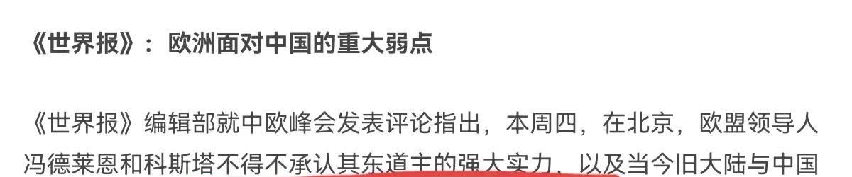 法国媒体着急了!来自法国世界报7月27日的消息说,现在的情况对于欧洲来说,可谓是非常不妙,因为欧洲已经看到了中国的实力,所以不得不低头。而冯德莱恩和科斯塔亲自到访中国,也正是说明了这一点。 法国媒体强调,中国的实力越来越强,欧洲面对中国时则越来越顾虑,这成了欧洲的弱点,但是欧洲对此却毫无办法。 事实上,可以看出,法国媒体这次是真的着急了,出来揭示了问题的真相。 对于欧洲来说,虽然心中不情愿,但是欧盟两大最高领导人最终还是亲自来访,这也说明了欧盟低头的意思。 所以,现在欧盟也意识到了问题所在。 一方面,美国还在对欧盟加税,欧盟也没有任何办法。另一方面,欧盟心中尽管对我们存在傲慢与偏见 ,但是却只能服软。 现在,欧盟和法国,都要重新审示和我们的关系了,这当然是我们实力的体现。