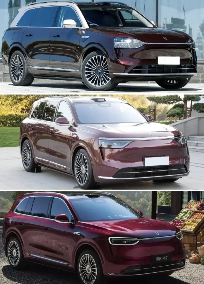 问界m7m8m9,最好看的居然是m7,感觉m7的大灯造型时尚一点,更有精气神,符合年轻人的口味。但是三个实车放在一起,尊贵感确实是逐级降低的,m8的贯穿灯就比m7霸气很多。m7真是脱胎换骨了,全新的架构,全新的颜值,老款m7应该是问界全系最丑的,新款直接摇身一变全系最帅。