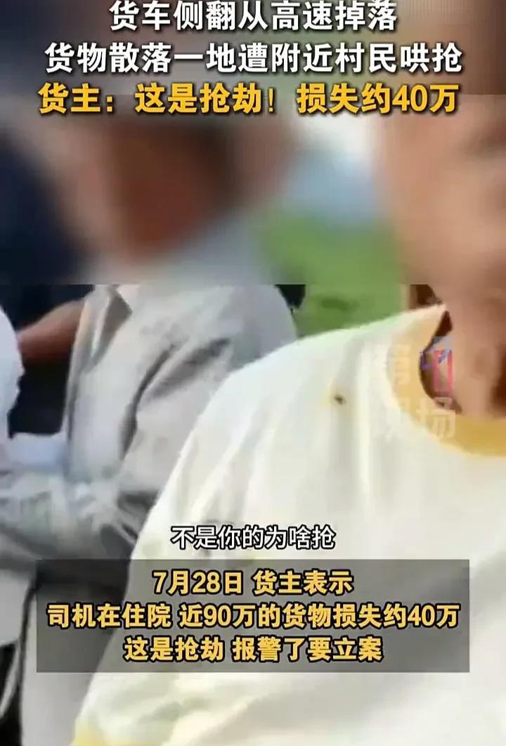 这群贪心的人惹上大事了!近日,山东济宁曲阜一辆货车在高速上行驶时不慎侧翻掉落,导致价值90万的货物洒落一地,这时附近的村民见状,纷纷前来抢夺货物,事后货主表示,司机夫妇受伤住院,被抢了40万货物,已经报警处理。
