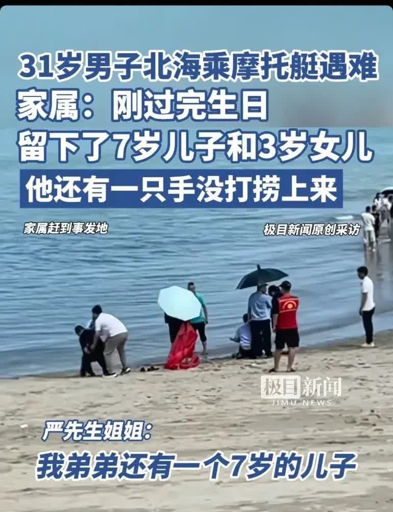 “还有一只手没有打捞上来…”31岁游艇遇难男子半个身子都是纹身,扫把头,本来是想搁这耍帅了没想唉,最可怜的是被撞的那个快艇驾驶员,还在昏迷。 开摩托艇的是遇难男子,教练在他后面坐。商家错在不该被男子说服,让该男子驾驶摩托艇。问了十多家被拒了,老天爷都尽力留你命了还是没留住,那些拒绝了的船务公司看到新闻内心:还好我坚持了原则! 这个该怎么负责就怎么负责,家属还质疑为啥先救教练,教练的命不是命,在水里肯定先捞谁方便就捞谁啊! 自己逞能,毁了自己,害了教练,还牵扯了一大帮的商户。当然教练允许没经验的严某开摩托艇,也应承担一定的责任。这就好比开汽车,你没有相关驾驶经验和驾驶证,非要违法操驾,出了事故当然需要自己负全责滴!并且还需要赔偿无辜受害者的损失! 所以还是那句话,驾驶任何交通工具一定要小心驾驶,不然容易出现意外,害的不仅仅是自己还有可能是其他人,不为自己考虑,也要为自己的家人考虑