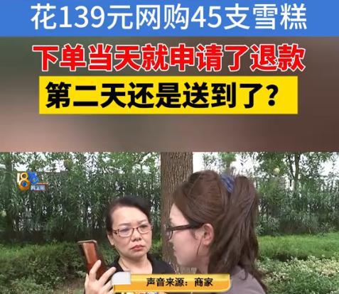 浙江嘉兴,大妈花139元在网上买了45根雪糕,可下单后,她发现自家冰箱没地方放,于是,又申请了退款。谁知,第二天雪糕竟送上门来,大妈果断拒收。万万没想到,退回后雪糕全都化了,商家以报废为由拒绝退款!货没收到钱也不退,大妈又急又气,找商家讨要说法。商家的回复让她瞬间打脸。 据1818黄金眼7月23日报道,浙江嘉兴的李阿姨最近摊上点烦心事。 她花139块在网上买了整整一箱45根雪糕,结果一着急想退货,没退成,反倒跟商家杠上了。 这雪糕她一根没吃到,钱还可能拿不回来! 天气热了,小孙子天天嚷嚷着想吃雪糕,尤其爱吃梦龙。 李阿姨就在购物APP上看看有没有活动,果然刷到了一个卖梦龙的店,搞促销:一箱45支只要139元,还写着“晚发就赔”,听着挺划算的。 李阿姨想着够孙子吃一阵子,立马下单。 可下完单她一想不对劲,赶忙去冰箱看看要怎么放。 结果一打开冰箱门,傻眼了——冷冻层塞得满满的,根本放不下! 她赶紧打开订单申请退款。 看着系统提示“等待商家处理”,她以为没事了,就放心地等消息。 可第二天中午,快递电话打来了:“阿姨,您订的雪糕到了,放您家门口行吗?” 李阿姨懵了:“我都申请退款了,你咋还送来?” 她立马点开订单一看,退款那边还在“平台处理中”,可物流显示,商家早在她申请退款那天晚上就把雪糕发出去了。 她赶紧跟快递员说:“退回去吧,我这边不要了。” 快递员也没办法,只好把雪糕退回网点。 李阿姨本以为这下事就结束了,没想到过了三天,平台弹出通知:“商家拒绝退款,理由是:您拒收导致商品报废。” 商家客服回她说:“规则写得很清楚,冷冻食品拒收导致损坏我们不负责,申请退款时我们货已经发出去了,责任您自己得担。” 李阿姨这下气不打一处来,赶紧翻规则看,发现确实写着:“冷冻商品拒收不退”、“超时未取视为弃件”之类的条款,但她还是觉得自己委屈:申请退款那会儿根本没提示已经发货,商家如果早点回应她,压根也不会出这事! 她联系平台客服,对方只说“我们会协调”,退款进度一点没动。 后来记者问李阿姨是下单后多长时间申请退款的,李阿姨信誓旦旦的说不超过俩小时,结果人家客服查看后台显示,李阿姨是在下单后四个多小时申请退款的。 这件事发到网上后,结果评论区炸锅了。 有人说139块也不是小钱,商家太不近人情,也有人指出,雪糕这种东西一旦离开冷链就报废了,阿姨拒收确实不太合适。 还有网友把问题指向平台,认为审核慢、规则模糊才让商家和消费者矛盾越来越深。 从整个过程来看,李阿姨确实有点冲动,没提前看清楚商品说明,也没注意快递进度。 而商家虽然在细则里写明了“拒收不退”,但并没有在发货前主动沟通,退款申请来了也没第一时间回应,才让误会越滚越大。 好消息是,在媒体介入协调后,商家答应重新核查情况,考虑是否能“酌情处理”一下。 信源:1818黄金眼